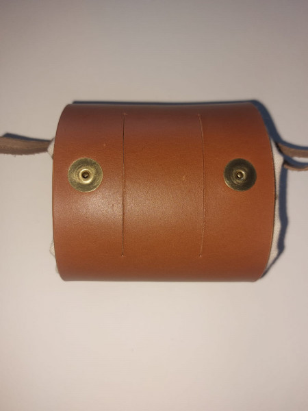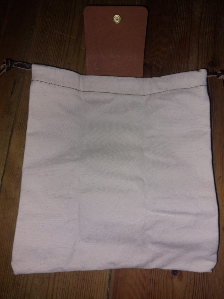 Designed and handmade in Penryn by Alison Barrett ( https://www.instagram.com/alibee101 ) . Beautiful leather and canvas tote bags with a belt loop in the back. 9 inch square strudy pouch, folds neatly into leather holder. Raising funds for the Loveland medicine garden.